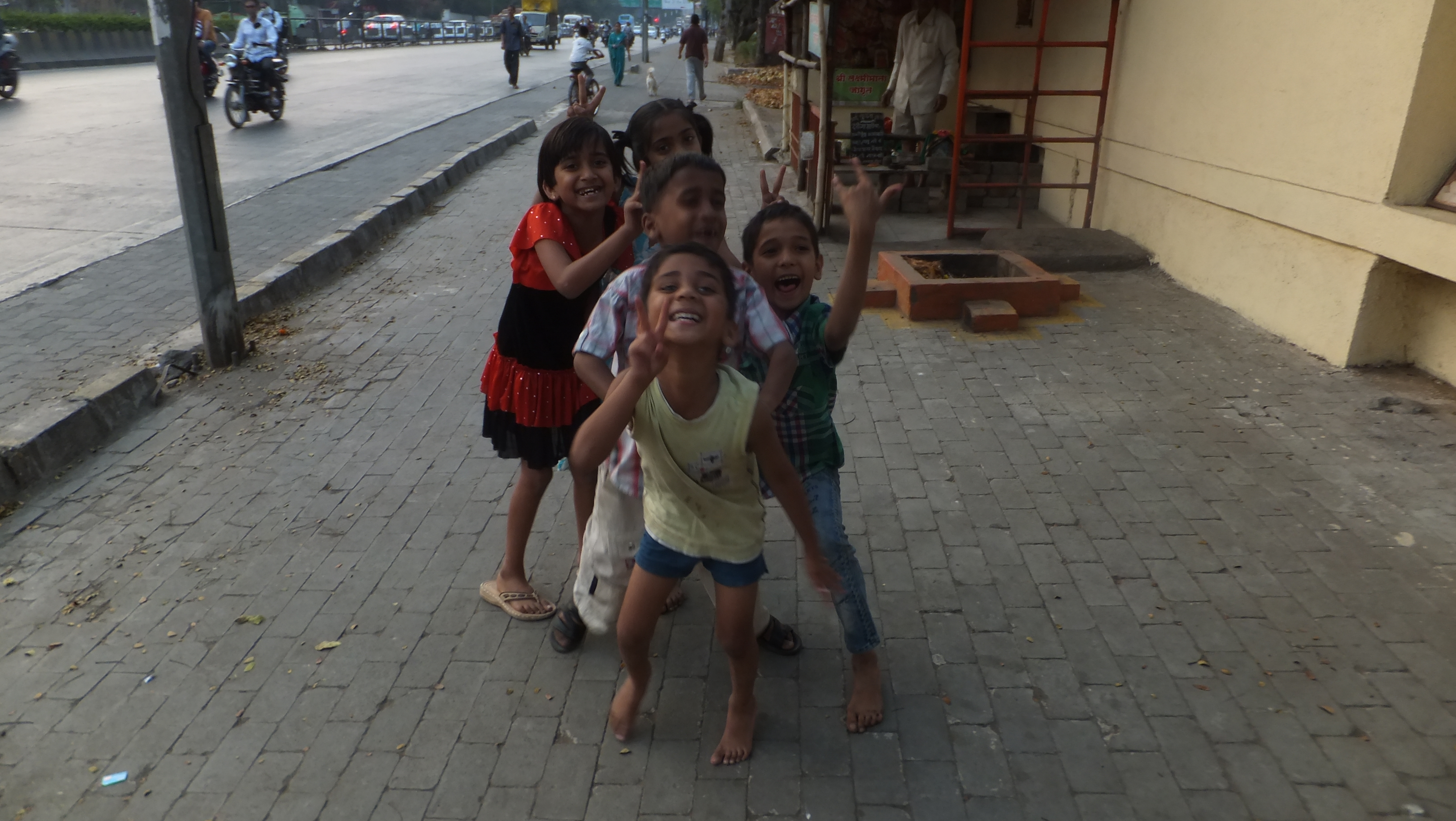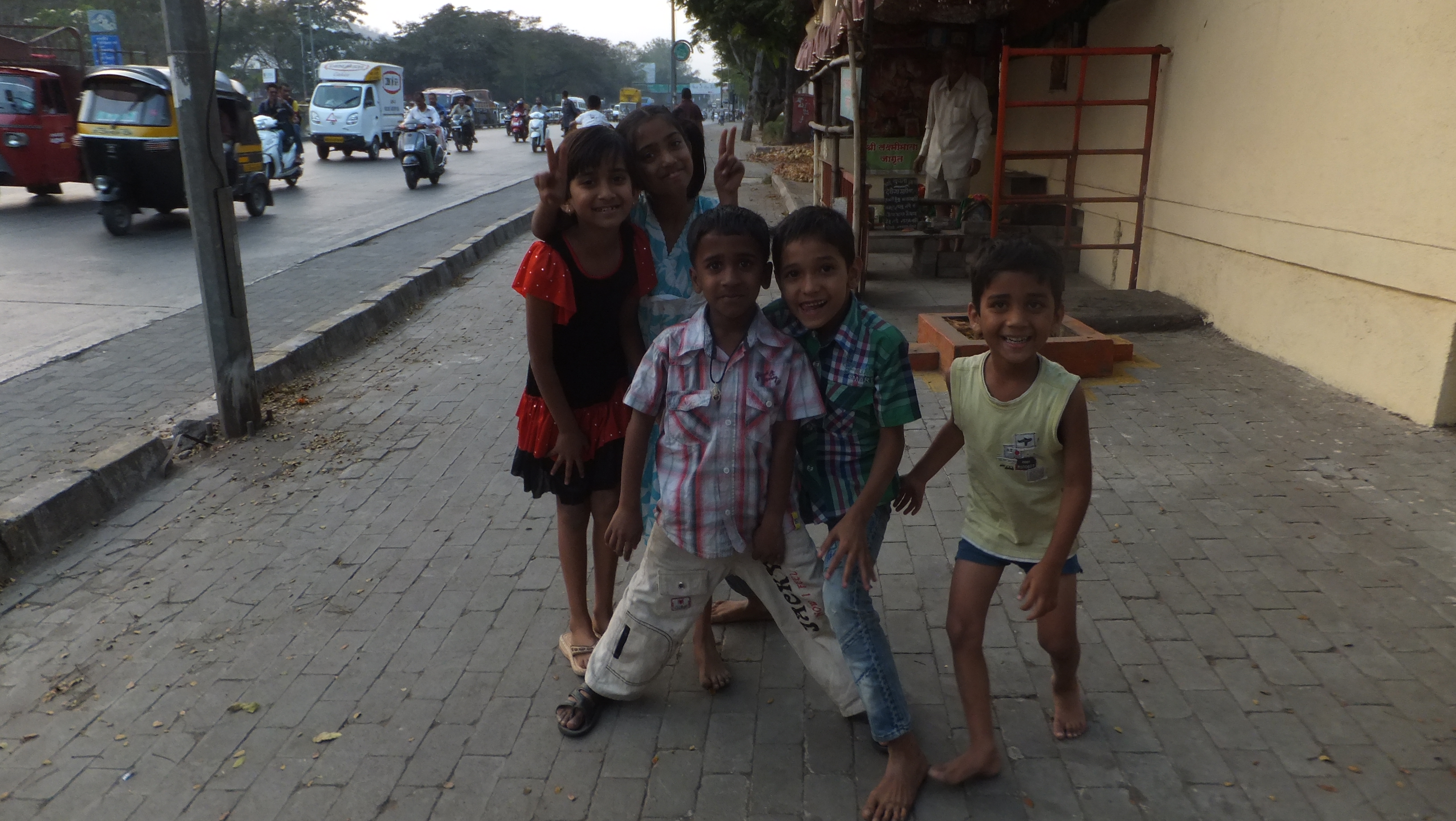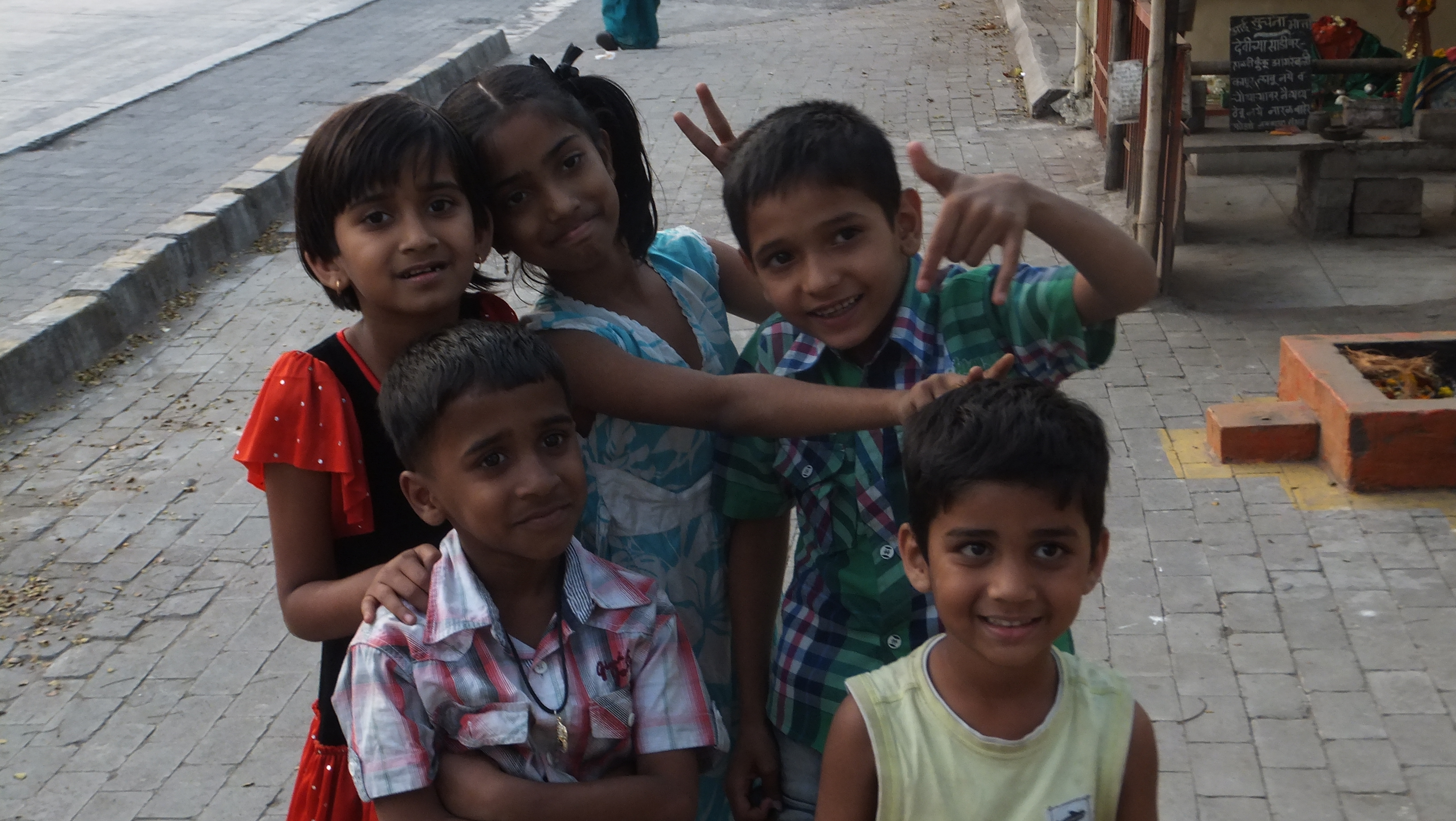 Suddenly children surround us.