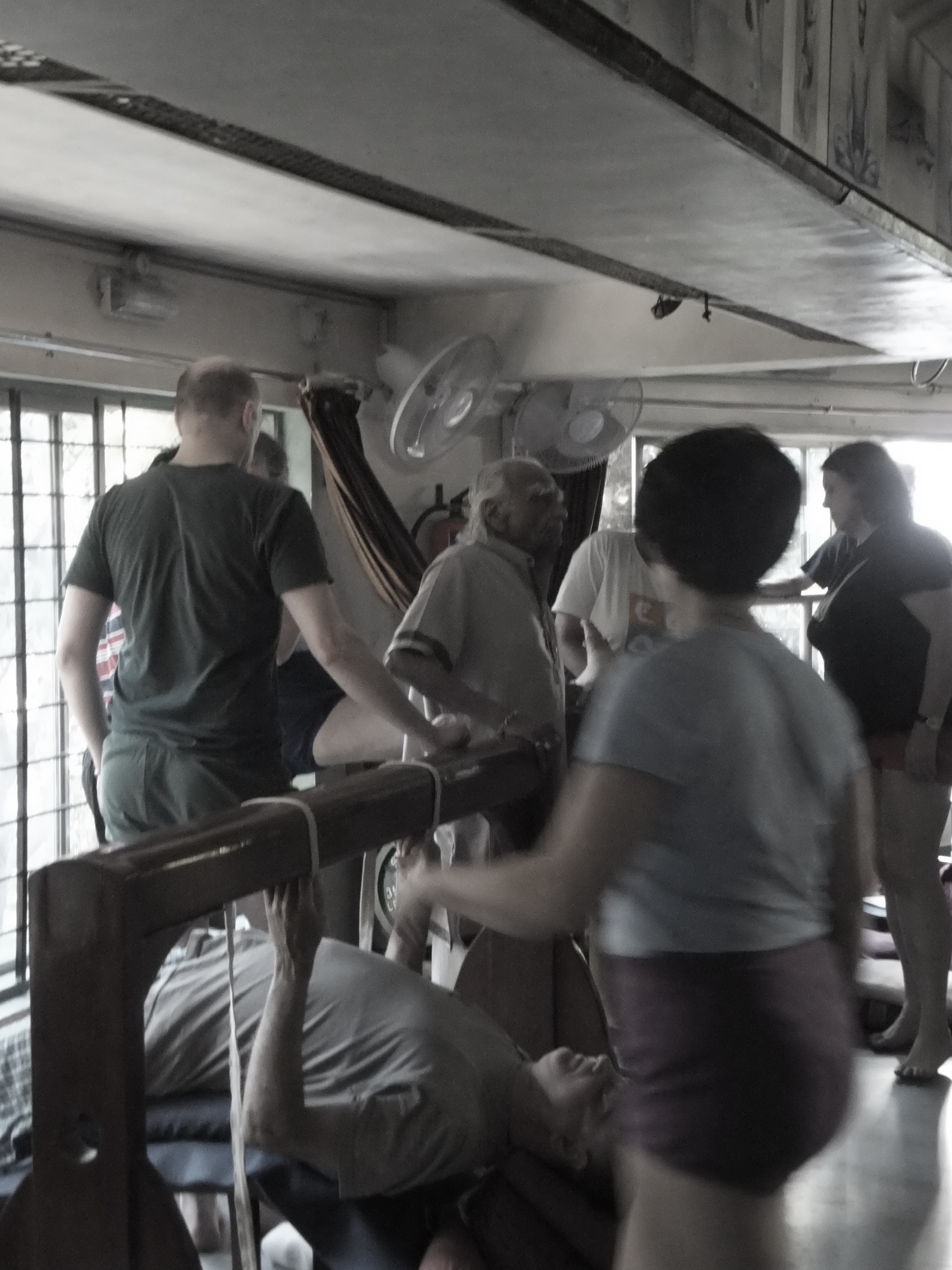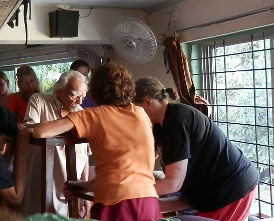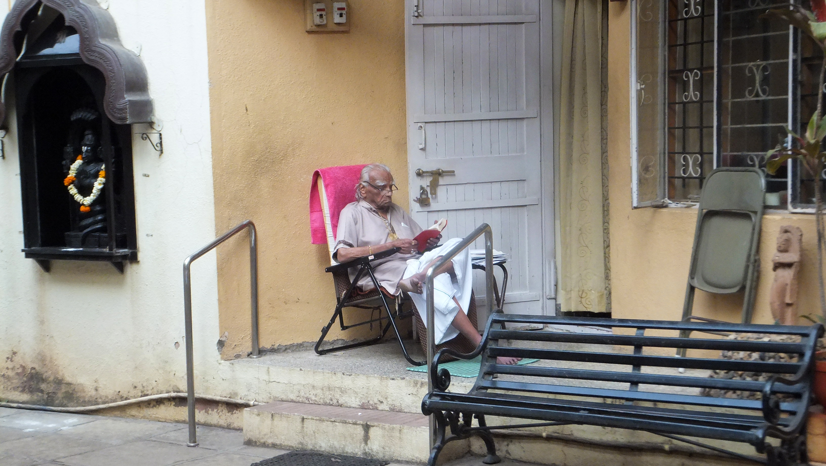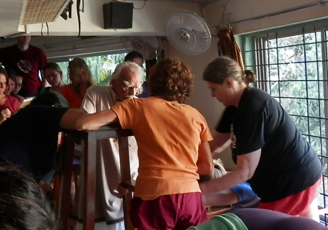 Wow. You have really captured some beautiful photographs of Guruji. This is before he made his trip to Delhi to receive his honour from the government of India. Its very hard to get a photo of Guruji just relaxing. I noticed he never really liked all the attention and he would leave the verandah and go inside if he started getting noticed by too many people. I wonder what book he was reading there. Even more difficult was to get a photo of Guruji, Geetaji, and Prashantji together. Their is a beautiful one of them all together in front of Patanjali’s statue in Lois Steinberg’s new book. Thanks for these pics!