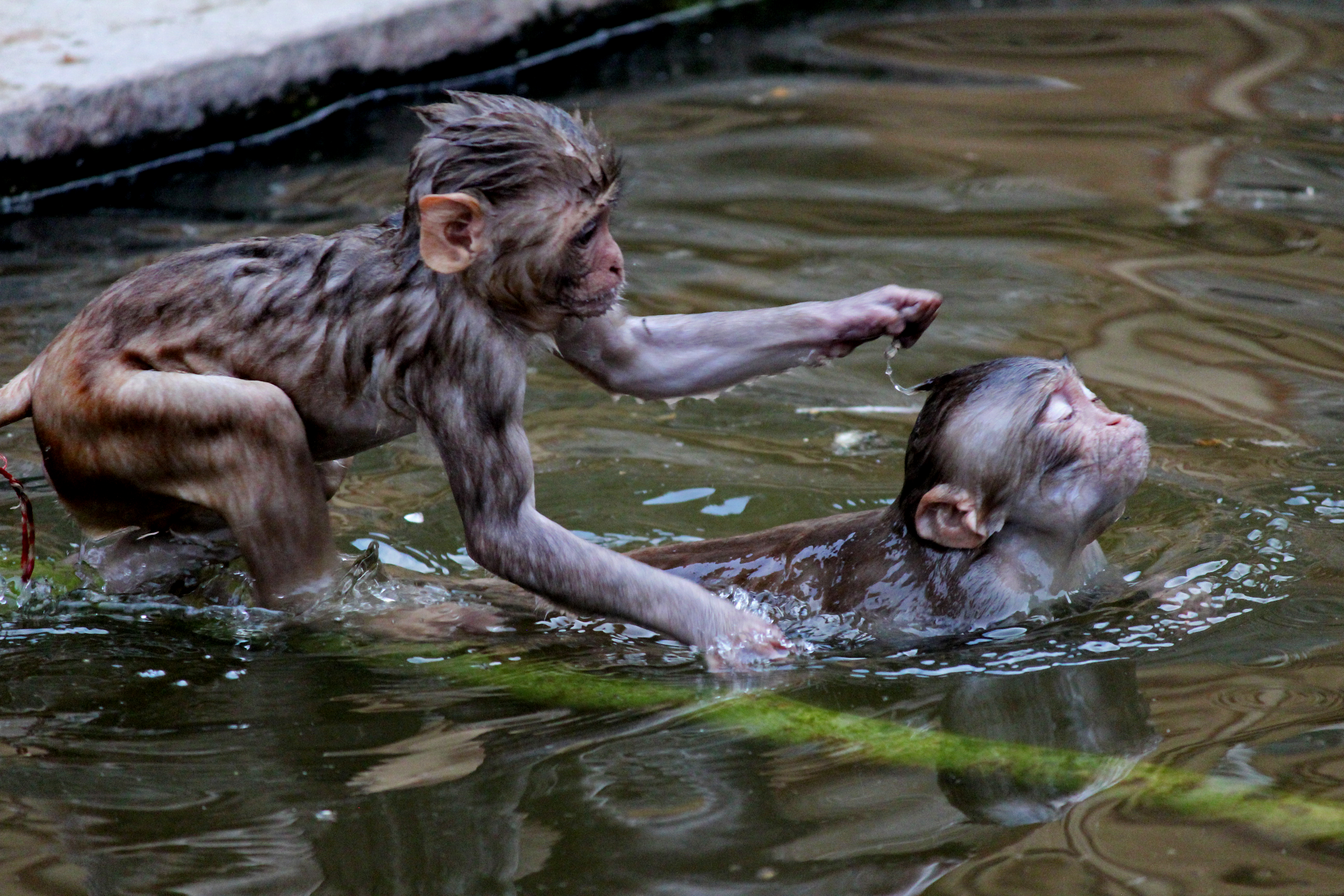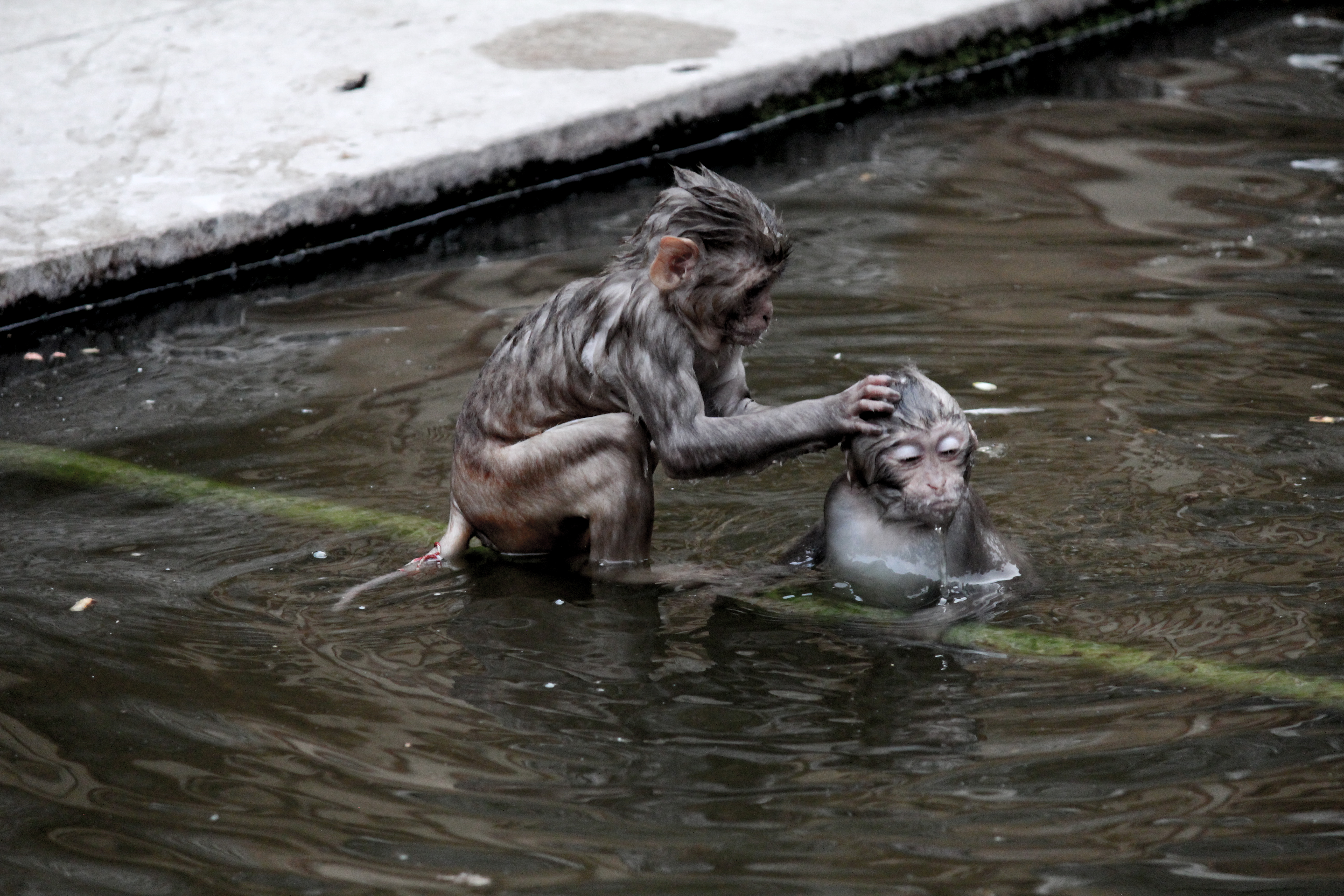 It is known as the Monkey temple in travel literature, due to the large tribe of monkeys who live here. The insanely intelligent and quite evil, Rhesus macaque. They are so aggressive, that here they easily intimidate the larger Langur monkeys. Interestingly enough, in Delhi, Langurs were trained to keep Rhesus monkeys from harassing people. They were on guard for decades to keep out armies of the smaller monkeys that plagued Delhi, keeping order in the streets and the hallowed halls of parliament.